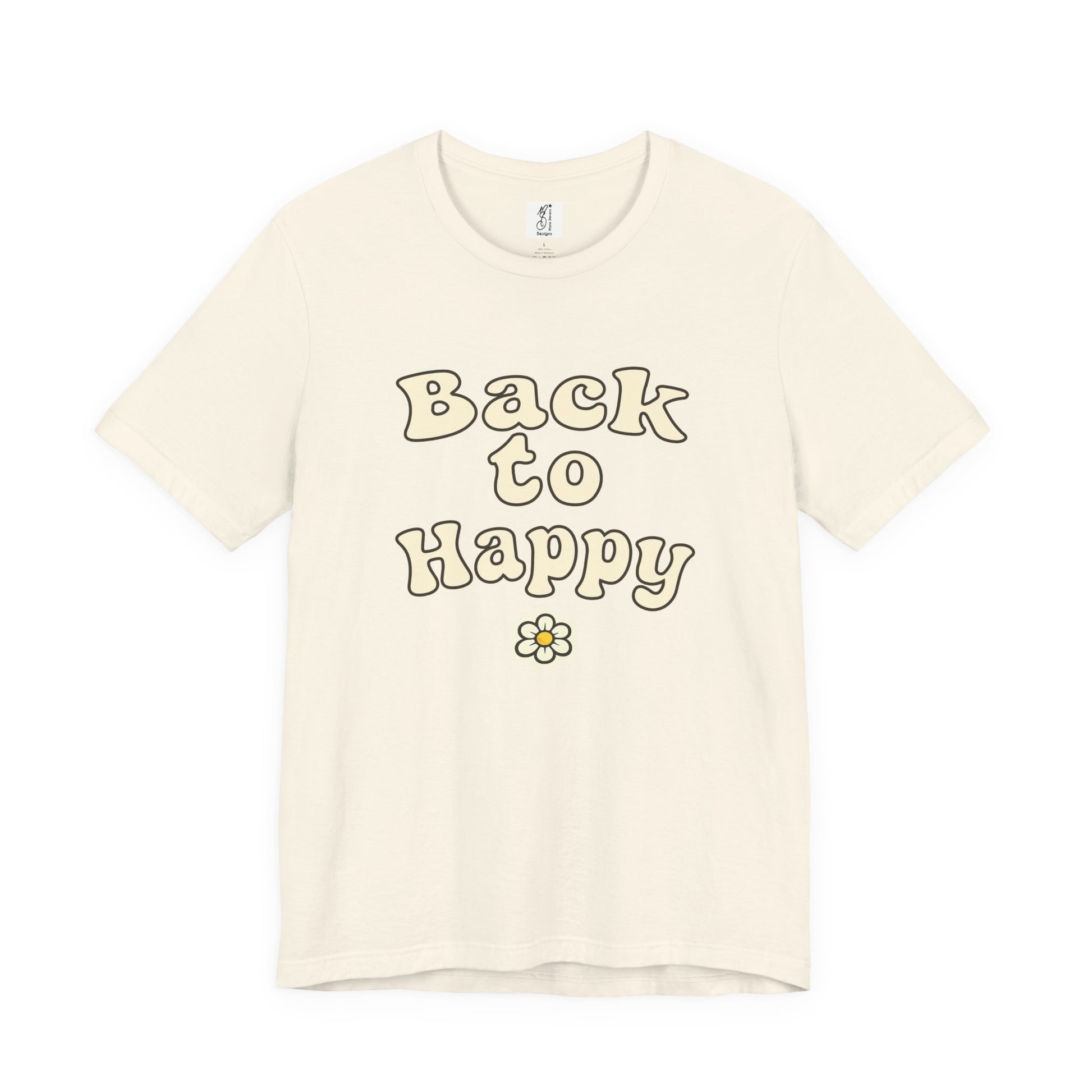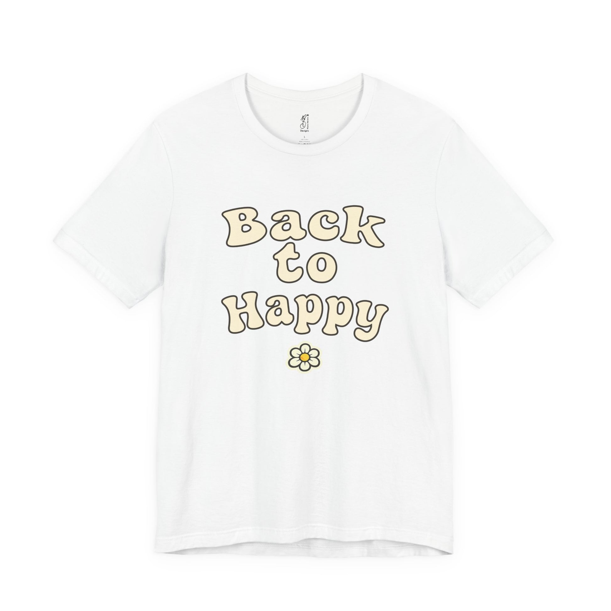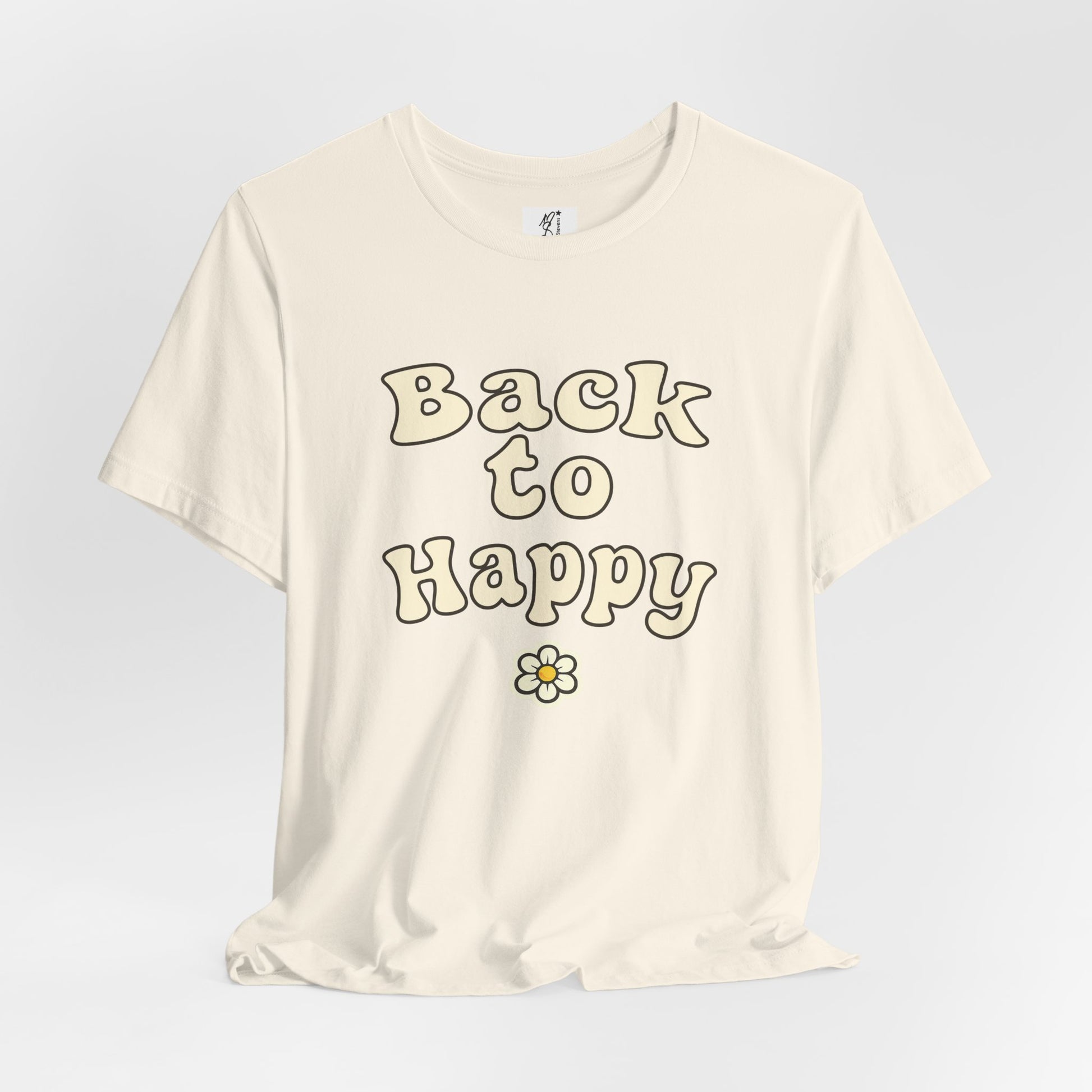 The stacked BACK TO HAPPY lettering is clean, timeless, and easy to read, making it perfect for everyday wear β whether youβre running errands, soaking up sunshine, or embracing a laid-back weekend vibe. Finished with a subtle retro flower accent, this design radiates peaceful energy without trying too hard.