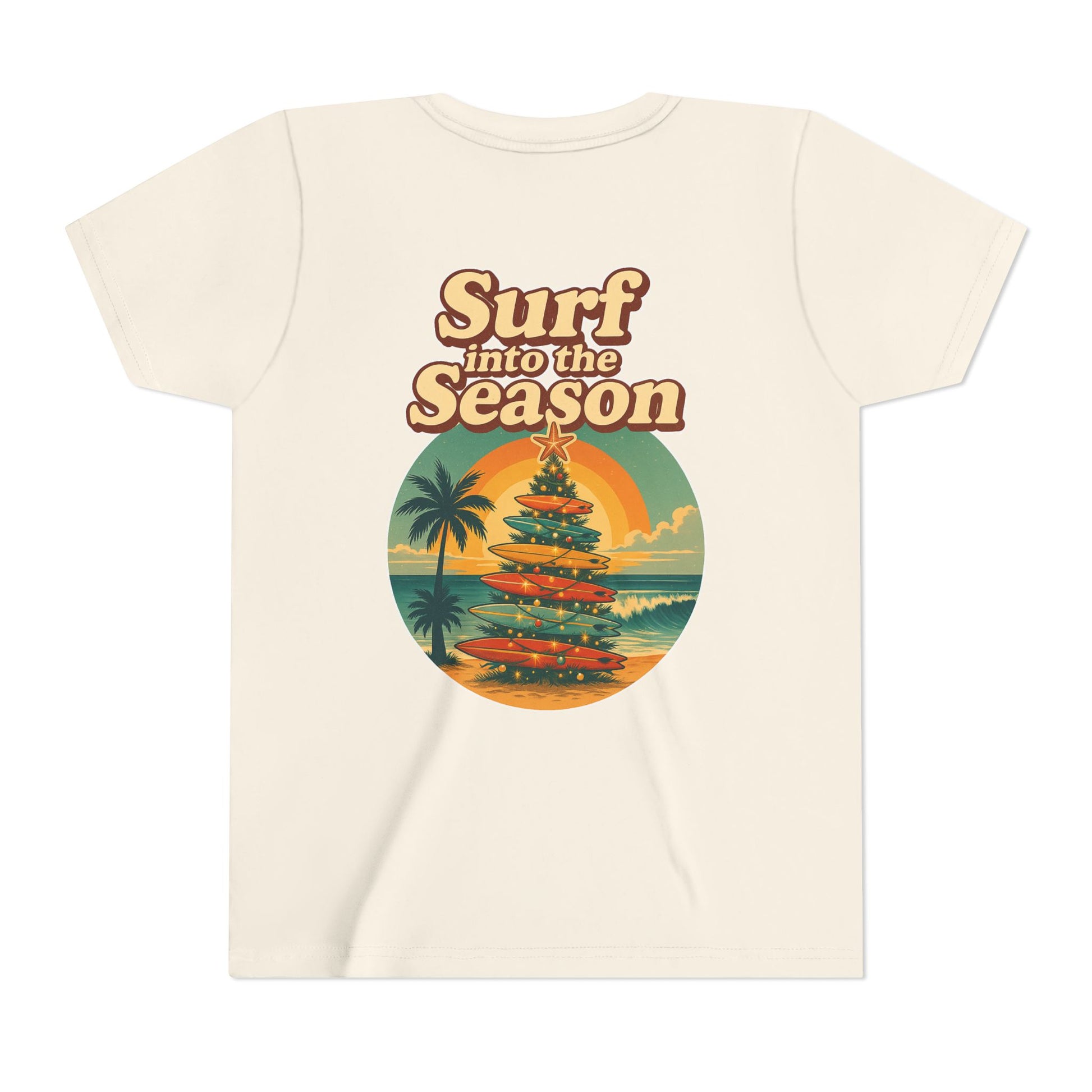 Youth Tee - "Surf Into the Season" Surf Christmas Shirt (Coastal Claus Holiday Tee)